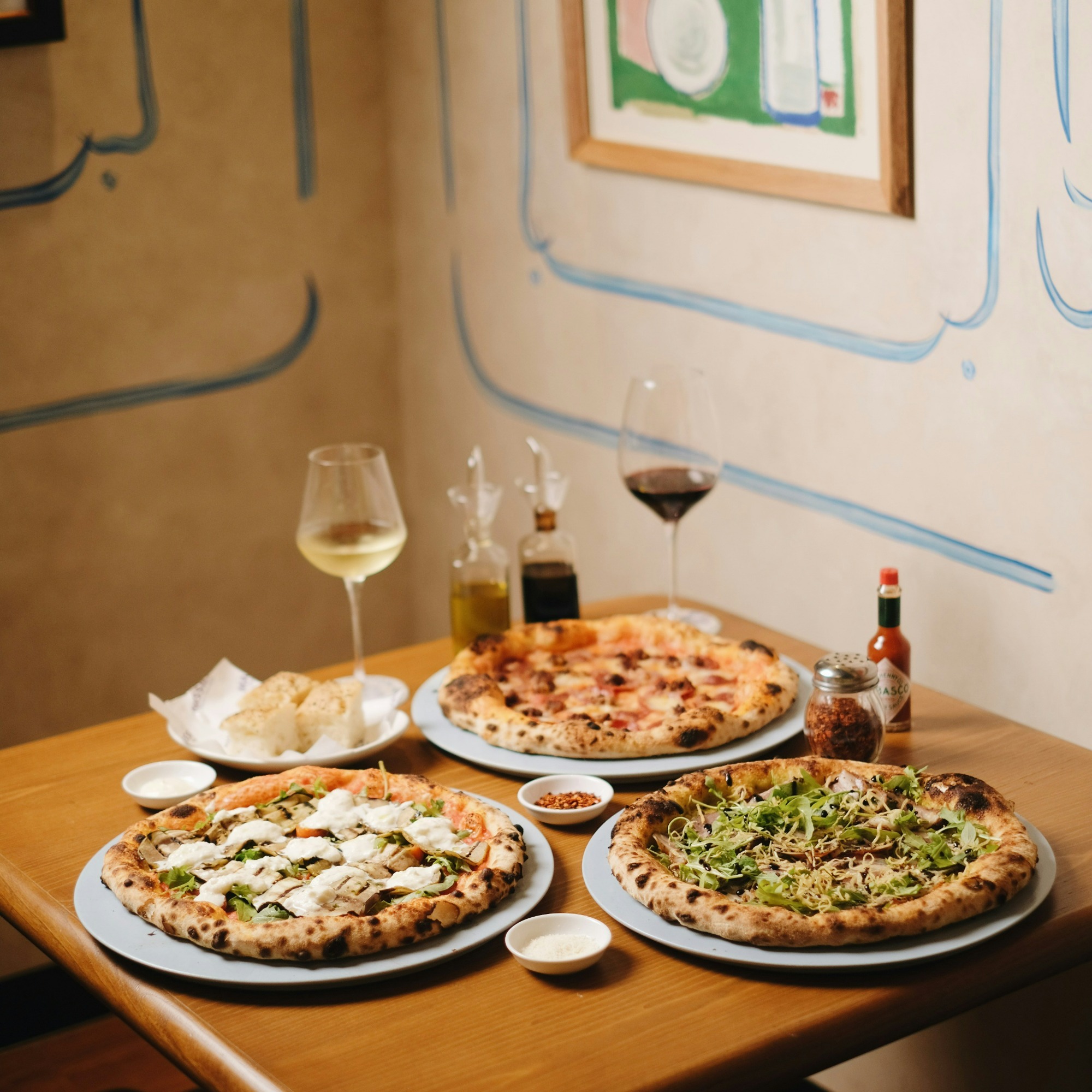 sos pomidorowy, mozzarella, warzywa konfitowane w oliwie - pomidorki koktajlowe, czosnek, pieczarki, pesto, feta, zest z cytryny, oliwa, mix serów długodojrzewających -